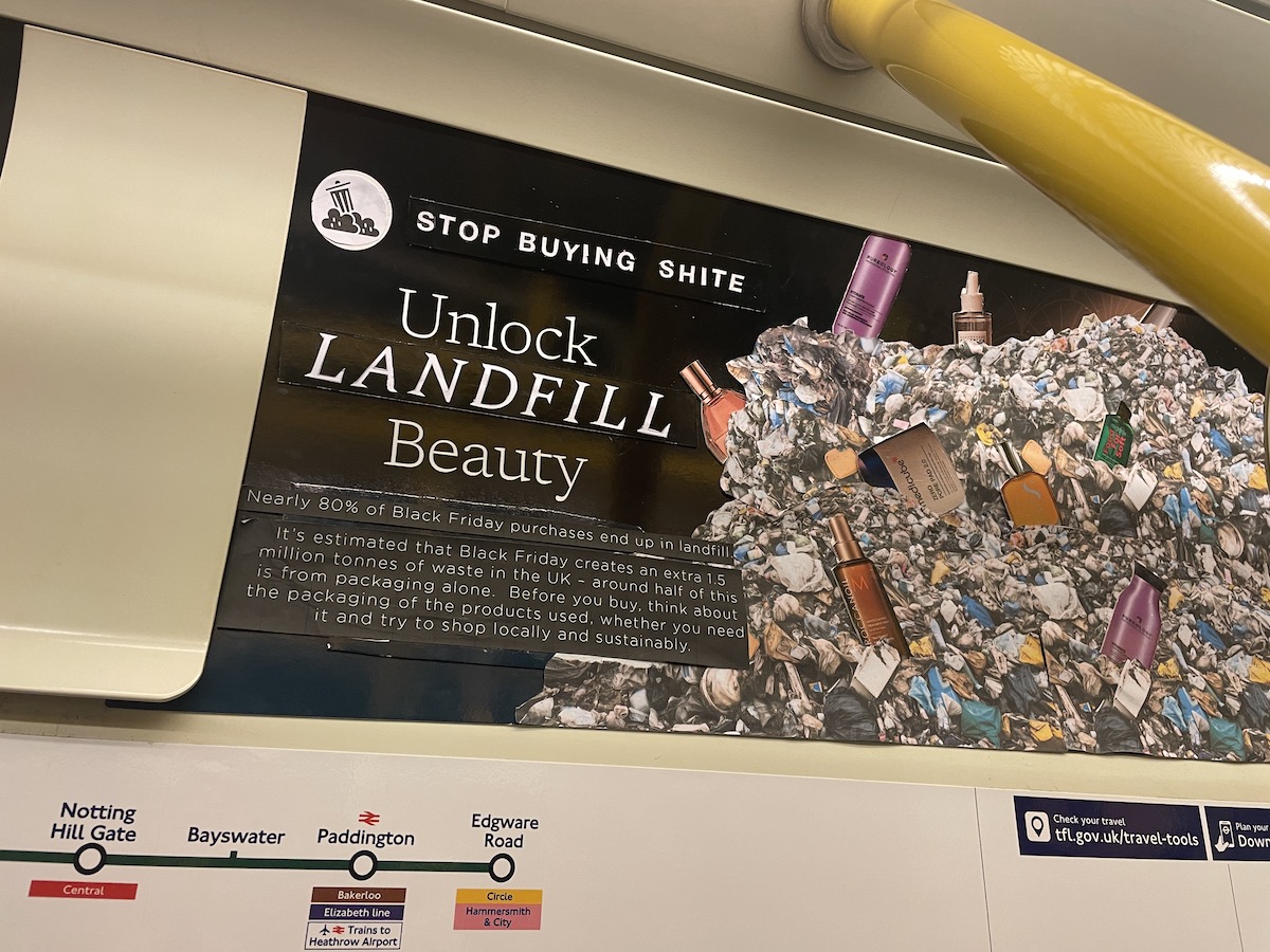 ‘Subvertising’ activists from Brandalism and Everyone Hates Elon, responding to the advertising bombardment that drives Black Friday, took more than 100 billboard, bus stop and London Underground advertising sites earlier this month.